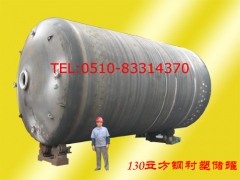 钢衬塑中间槽 钢衬塑中转槽由于运用独特的滚塑生产工艺,储槽钢体内表与塑料层间还焊一层钢制冲压菱形网,使内衬塑料层与钢体外壳过渡结合在一起,消除和降低了塑料与钢板冷热收缩不一致而产生的脱层现象,提高了产品可靠性。产品使用最高温度达到98℃,最低温度可达-30℃,基本满足了不同地区不同温差条件下使用。是一种成本低、安全可靠、性价比较高的耐腐蚀设备。